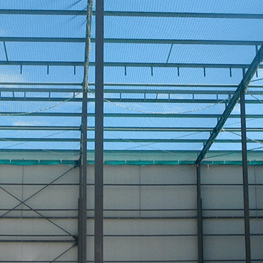Nets are made of knotted polyethylene (HDPE) hence is UV resistant. HDPE nets are chemically inert, water and weather proof. It has high breaking strength. Nets are fixed using stainless steel wire framework and hardwares. For Further specifications, the nets are fixed using wire rope, net bolts, screw pins, barrel strainers and hogging staples .This helps tight installation of nets that cannot be stretched, giving it a strong, clean & beautiful appearance.